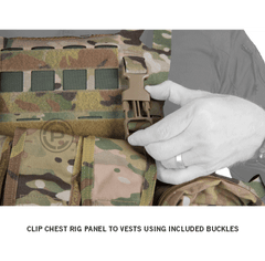 - Easily attached to harness or front of vest via 1” quick release buckles