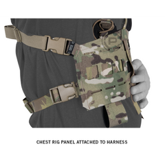The AIRLITE® CONVERTIBLE CHEST RIG is a lightweight multi-functional load carriage platform designed for maximum flexibility, weight-savings and packability. At just under 450g, the AIRLITE® CONVERTIBLE CHEST RIG offers a variety of configuration options to suit varying operational needs. The front panel can attach to the included shoulder harness or to the front of a vest using the included quick attach hardware. Our patented AIRLITE® construction sheds unnecessary weight and bulk while improving overall ventilation.