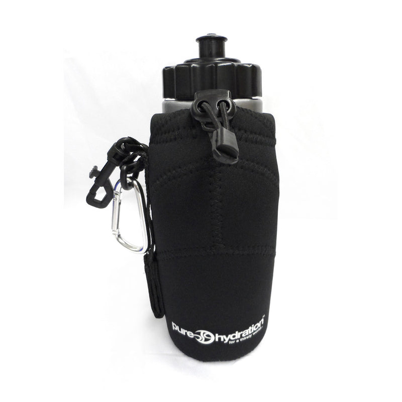 Individual stitched panels, allowing for a skin-tight fit for your bottle. Multiple attachment points – put it where you want it. Neoprene helps insulate your Aquapure Traveller, keeping your water cool.